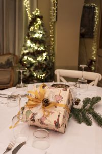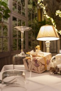 Prepara dei centri tavola e aggiungi candele e anche qualche pacchetto. Un bel regalo predispone al buon cibo.