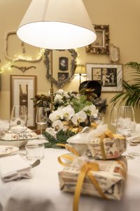 E’ importante ottenere un ambiente caldo anche a tavola, per ricreare l’atmosfera natalizia: luci, ombre, suoni e il calore del camino acceso.